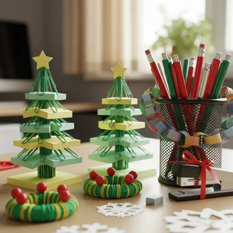 Everyday office supplies become decoration opportunities when you apply creative holiday thinking to functional items everyone uses daily. Wrap staplers and tape dispensers with festive paper, turning mundane tools into cheerful desk accessories that spread joy during routine tasks. Replace standard pen cups with holiday mugs, use Christmas tins for paperclip storage, and add seasonal stickers to file folders and binders. Create garlands from paper clips linked together and spray-painted gold or silver for budget-friendly metallic decorations. Even printer paper can join the celebration with holiday borders for internal memos and meeting agendas. These small touches accumulate into an overall festive atmosphere while maintaining full office functionality and proving that holiday spirit can infuse every aspect of work life.
