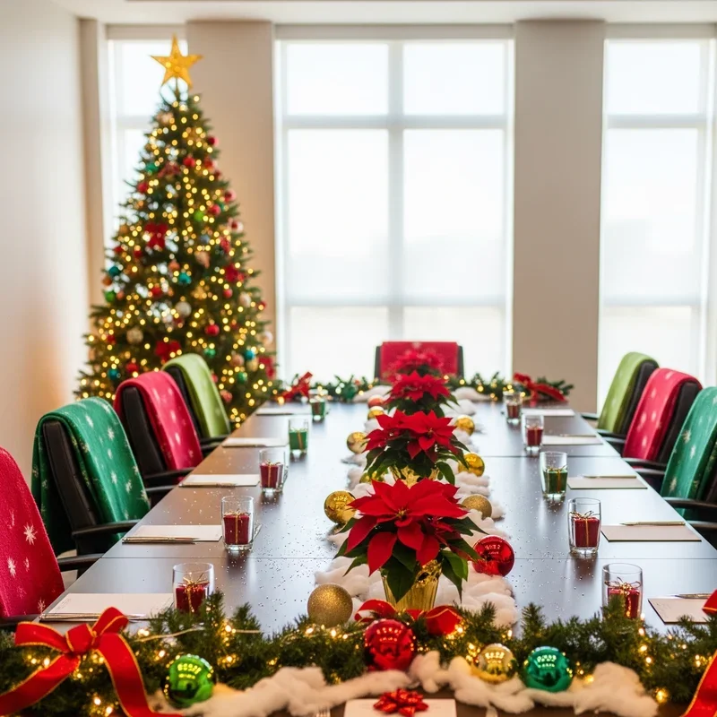 Conference rooms host important meetings and presentations, requiring decorations that enhance rather than distract from professional proceedings. Subtle touches like a elegant centerpiece featuring battery-operated candles, evergreen sprigs, and metallic accents add sophistication without overwhelming the space. Replace standard artwork with tasteful holiday prints or create a feature wall with removable holiday decals that won't damage paint. Consider adding a small corner tree decorated with industry-relevant ornaments that serve as conversation starters with clients. Swap regular chair covers for ones featuring subtle holiday patterns, or add festive yet professional table runners that incorporate company colors. These thoughtful additions create a welcoming atmosphere that acknowledges the season while maintaining the professional environment necessary for serious business.