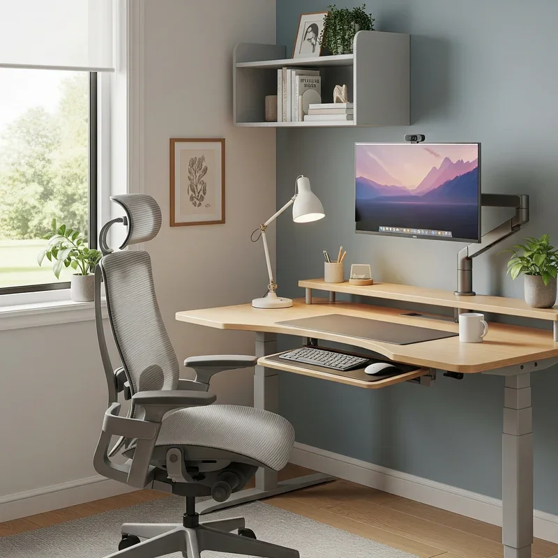 Comfort and ergonomics become even more critical in small spaces where you can't easily rearrange furniture or stretch out. Position your monitor at eye level to prevent neck strain, using monitor arms that free up desk space while allowing adjustment. Choose an ergonomic chair that fits your body and your space, perhaps one with a smaller footprint but full support features. Ensure proper keyboard and mouse placement to avoid repetitive strain injuries. Add a footrest if your desk height isn't ideal. Consider the flow of movement in your office; you should be able to move freely without constantly bumping into furniture. Creating an ergonomic setup in a small space requires more planning but pays dividends in productivity and physical wellbeing over time.