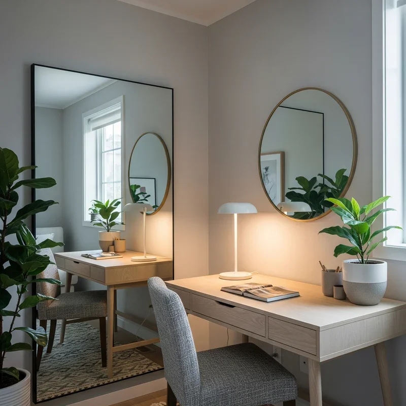 Mirrors are your secret weapon in the battle against cramped quarters, creating an instant illusion of doubled space and enhanced natural light. Strategically placing a large mirror opposite a window reflects outdoor views and daylight, making your office feel more connected to the outside world. Consider mirrored furniture pieces or decorative mirror arrangements that serve both functional and aesthetic purposes. The reflection creates depth perception that tricks your eye into seeing a larger room than actually exists. However, be mindful of placement to avoid distracting reflections during video calls or while working at your computer. A well-positioned mirror can transform a claustrophobic cubby into an airy workspace that feels open and inviting rather than confined and limiting.