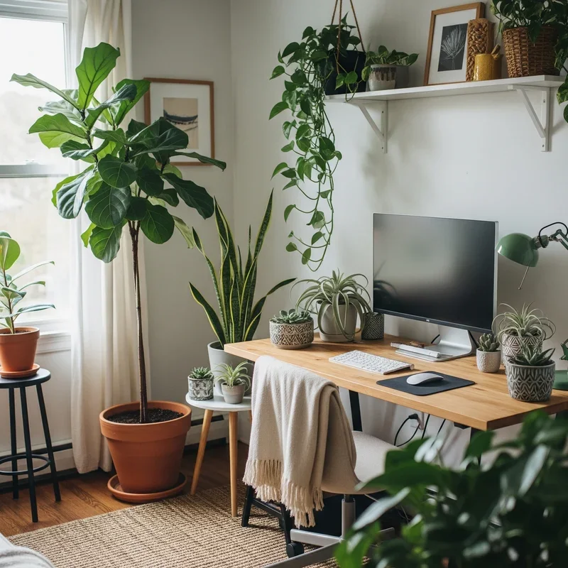 Bringing nature into your small office does more than just prettify the space; it actively improves air quality and boosts your mood and productivity. Choose low-maintenance plants like pothos, snake plants, or succulents that thrive in office conditions and don't require constant attention. Vertical gardens or hanging planters add greenery without sacrificing desk or floor space. Small plants on floating shelves or windowsills create visual interest at different heights. Studies show that plants reduce stress and increase creativity, making them perfect office companions. They also help absorb sound and create a more pleasant acoustic environment. Even one or two well-placed plants can transform your small office from a sterile workspace into a vibrant, living environment that energizes rather than drains you.