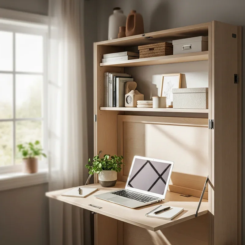 For those working with extremely limited space, a fold-away office provides a complete workspace that disappears when not in use. Wall-mounted drop-leaf desks fold flat against the wall, transforming from office to living space in seconds. Murphy desk systems combine a work surface with storage that closes into a cabinet-like structure. Folding chairs store flat in closets or behind doors when you're done working. Use a rolling cart for supplies that can be wheeled into a closet at day's end. This approach works especially well in studio apartments or multipurpose rooms where the office can't be permanent. The ability to completely hide your workspace helps maintain work-life balance while maximizing the functionality of every square foot in your home.