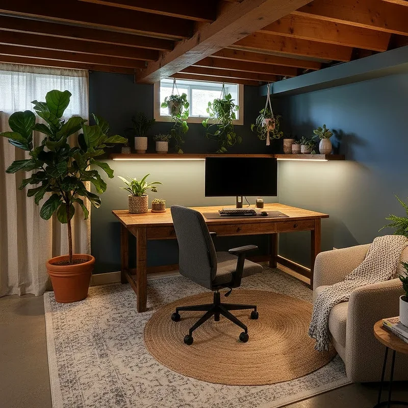 Living plants breathe life into basement offices, quite literally improving air quality while adding natural beauty to underground spaces. While basements present lighting challenges for plants, many varieties thrive in low light conditions. Snake plants, pothos, and ZZ plants all tolerate limited natural light while filtering air and adding greenery. Position plants strategically under grow lights or near windows to ensure their health. The presence of living things creates psychological benefits beyond aesthetics, reducing stress and increasing feelings of wellbeing. Plants also soften hard edges and industrial elements common in basements, contributing to that cozy feeling you're cultivating. Start with easy care varieties if you're new to plant parenthood, gradually expanding your collection as you learn what thrives in your specific conditions. These green companions transform sterile spaces into vibrant, living environments.