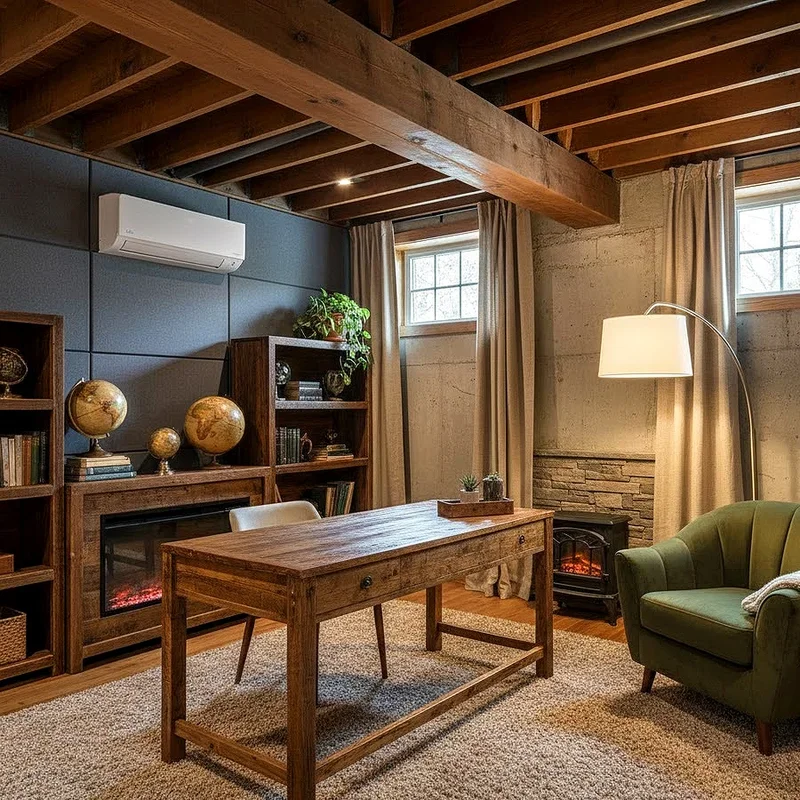 Nothing destroys workplace coziness faster than being too cold or too hot, a common basement struggle. Proper insulation in walls and ceilings regulates temperature and reduces energy costs year round. Consider adding a separate HVAC zone for your basement office, allowing independent temperature control without affecting the rest of your home. Radiant floor heating provides luxurious warmth that rises from below, perfect for cold basement floors. If full HVAC updates aren't feasible, a quality space heater and fan can supplement existing systems. Temperature consistency matters as much as the actual temperature; nobody wants to work in a space that fluctuates wildly throughout the day. Investing in climate control transforms your basement from seasonally unusable to a comfortable year round workspace that rivals any above ground office.