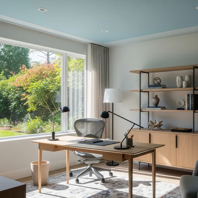 Who says ceilings have to be boring white? Painting your office ceiling sky blue creates an illusion of height and openness that can transform even the smallest workspace. This clever trick makes you feel like you're working under an endless sky, reducing that boxed-in feeling many offices create. Pair it with white walls for a crisp, clean look, or go bold with darker blue walls for a cocoon-like atmosphere. Adding subtle cloud effects or gradient painting techniques takes this idea to the next level. The psychological benefits are real too, as sky blue promotes calm thinking and reduces stress during those deadline crunches. Consider adding recessed lighting to enhance the airy feeling even more.
