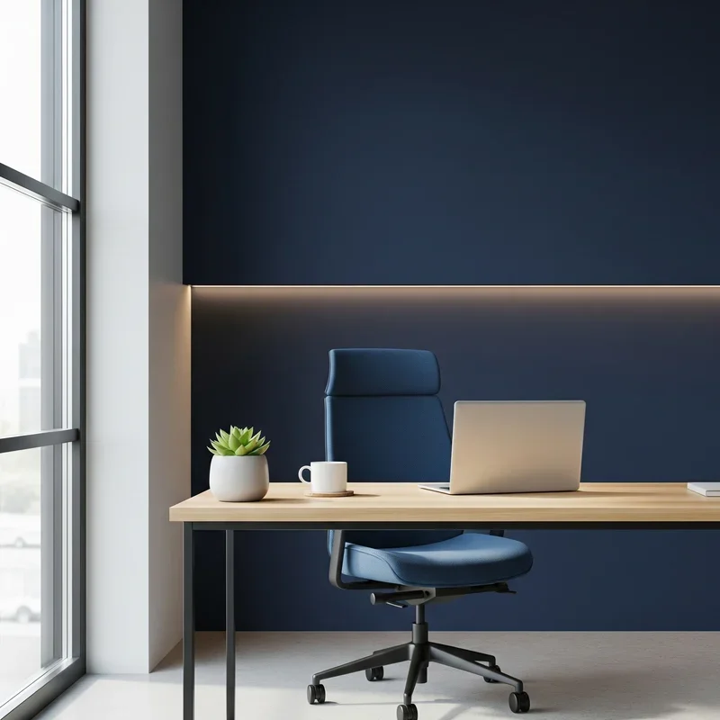 Nothing says professional quite like a well-executed navy blue accent wall behind your desk. This bold choice creates an instant focal point that frames video calls perfectly while adding depth to any size office. Navy works brilliantly with metallic accents like brass or gold hardware, creating a luxurious feel without breaking the bank. You can paint just one wall or create a geometric pattern mixing navy with lighter shades for added visual interest. The beauty of navy lies in its versatility, complementing everything from industrial concrete floors to traditional wooden furniture. Plus, it hides scuff marks better than lighter colors, making it practical for high-traffic areas.
