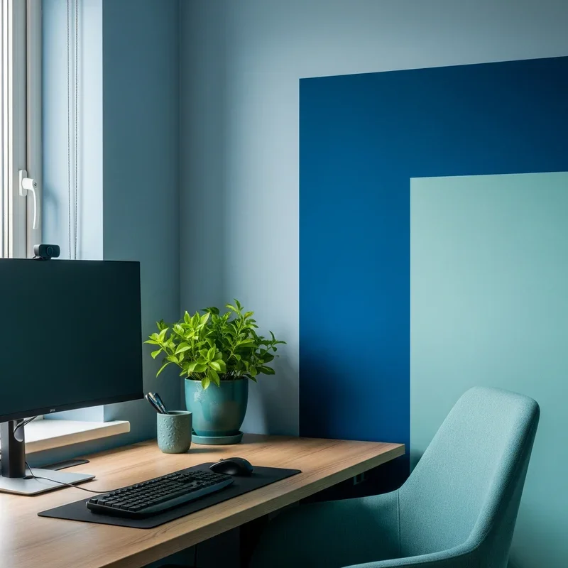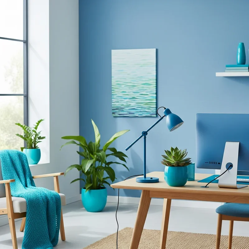 Color blocking with various shades of blue and teal creates dynamic visual interest that keeps your office feeling fresh and contemporary. Try painting geometric shapes on walls, using different blue tones for each section to create depth and movement. This technique works especially well in open-plan offices where you need to define different zones without physical barriers. Combine deep teal with lighter aqua and classic blue for a harmonious yet exciting palette. You can apply this concept to furniture too, choosing pieces in complementary blue shades that work together like a well-orchestrated symphony. The result is a cohesive space that feels intentional and designer-worthy without requiring a complete overhaul.