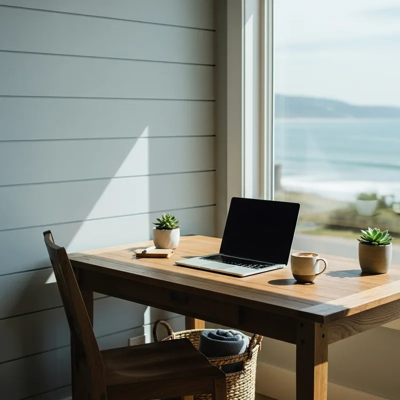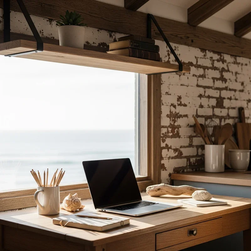 Transform your workspace with coastal office ideas. Discover 15 ways to bring beach vibes indoors for a serene, productive environment.