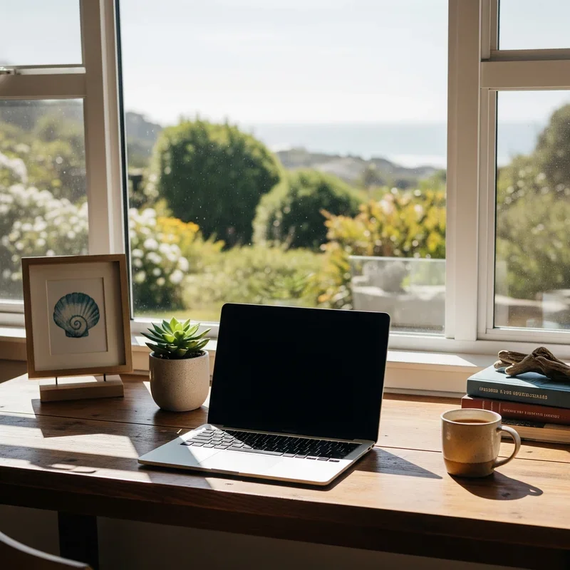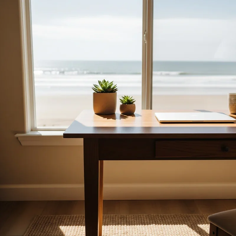 Living plants serve as vital links between your indoor workspace and the natural coastal environment you're emulating, bringing energy and life to even the most technology-heavy office. Select species that naturally thrive in coastal regions – sturdy palms that withstand salt air, architectural succulents that store water like beach plants, or trailing pothos that mimics cascading beach vines. Create vertical interest with tall bird of paradise or fiddle leaf figs in corners, while desktop-friendly options like air plants in sea urchin shells or small succulents in driftwood planters keep nature within arm's reach. Group plants at varying heights using coastal-inspired containers – whitewashed terracotta, blue ceramic pots, or woven baskets lined with plastic. Beyond their aesthetic contribution, these green companions improve air quality, reduce stress, and provide welcome visual breaks from screen time. Maintain a watering schedule that fits your work routine, choosing low-maintenance varieties if you travel frequently or get absorbed in projects.