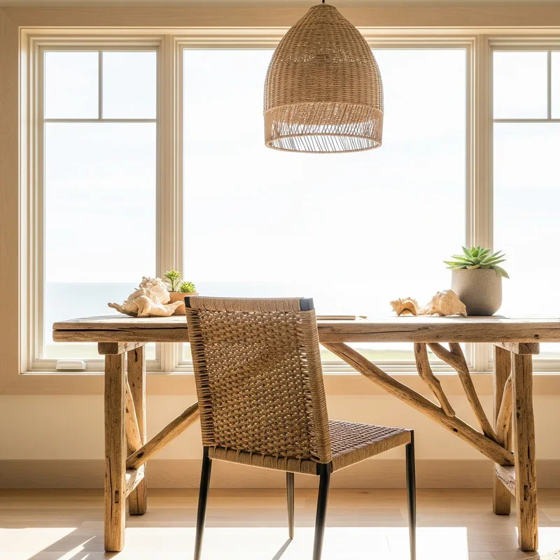 The soul of coastal design lives in natural materials, and nothing captures this essence better than thoughtfully chosen wood furniture that bears the marks of time and nature. Seek out desks crafted from reclaimed pier wood or tables made from salvaged boat planks, each piece carrying stories of maritime adventures in their weathered surfaces. The key lies in embracing imperfection – those sun-bleached spots, salt-worn edges, and natural grain patterns that make each piece uniquely beautiful. A whitewashed oak desk provides ample workspace while maintaining that light, airy feeling essential to coastal interiors. Pair it with a bookshelf in natural pine or a filing cabinet in distressed gray wood for a curated, collected-over-time aesthetic. Modern coastal style often mixes wood tones intentionally, perhaps combining a blonde wood desk with darker driftwood accents, creating depth without heaviness. Remember that authenticity matters more than perfection in coastal design, so choose pieces that feel genuine rather than artificially distressed.
