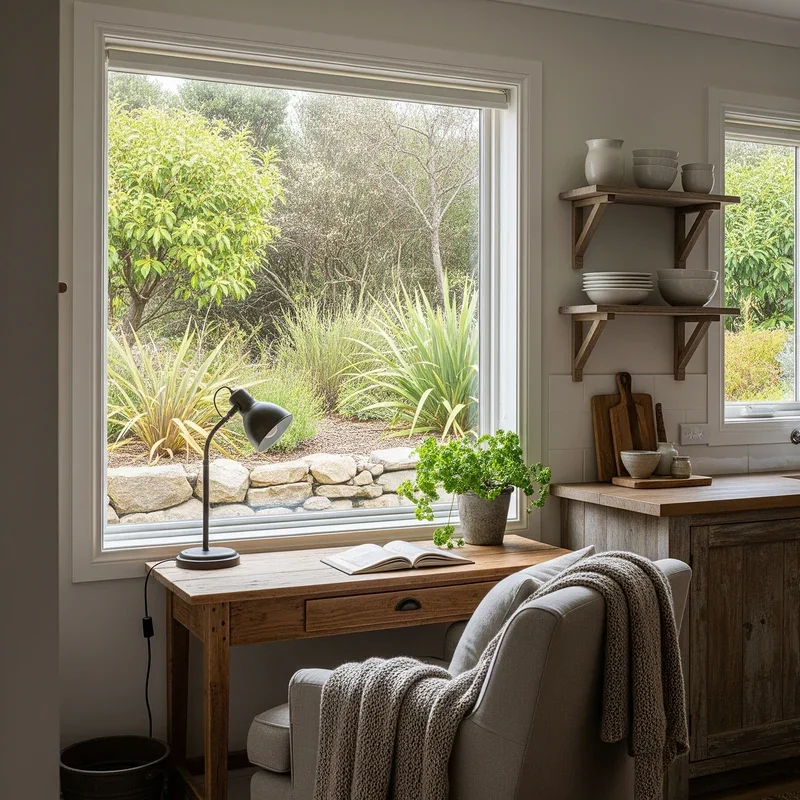Light transforms spaces, and in coastal design, managing natural light becomes crucial for creating that signature breezy atmosphere. Sheer curtains act as soft filters, diffusing harsh sunlight into gentle illumination that reduces screen glare while maintaining connection to the outdoors. Choose fabrics with subtle texture – linen sheers with their natural slub, cotton voile with delicate embroidery, or even lightweight burlap for a more rustic coastal feel. Install curtain rods well above and beyond window frames to maximize the perception of window size and allow maximum light penetration when curtains are drawn aside. Layer different weights of sheers for adjustable privacy and light control throughout the day. Consider adding wooden or bamboo blinds behind sheers for complete light blocking when needed, creating a flexible system that adapts to your work requirements. The gentle movement of sheer fabric in a breeze adds kinetic energy to your space, preventing that static, closed-in feeling that can stifle creativity during long work sessions.