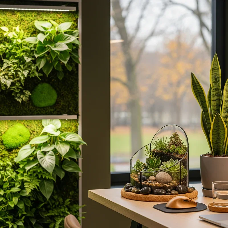 Bringing nature indoors isn't just trendy; it's scientifically proven to boost creativity and reduce stress in high-pressure environments. Large potted plants like fiddle leaf figs or snake plants purify air while adding vertical interest to corners. Living walls create stunning focal points that literally breathe life into your space, improving air quality naturally. Position your desk near windows to maximize natural light exposure, which regulates circadian rhythms and enhances mood. Water features provide soothing background sounds that mask distracting office noise while promoting calm focus. Natural materials like bamboo flooring or reclaimed wood accents connect you to the outdoors even during long indoor days. Studies show that offices with biophilic elements see productivity increases of up to fifteen percent, making this investment both beautiful and practical.