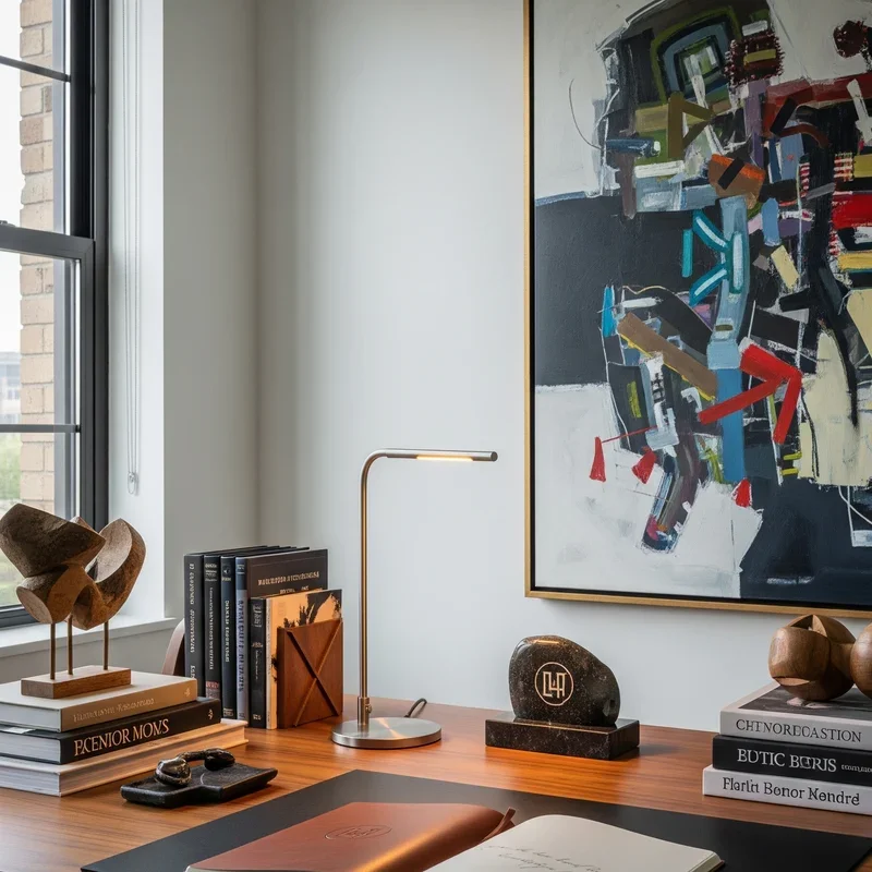 Your office art tells your story without words, creating conversation starters that reveal your values and vision. Commission custom pieces that reflect your company's mission, showing commitment to supporting artists while reinforcing corporate culture. Display industry awards and certifications prominently but tastefully, letting achievements speak without appearing boastful or overwhelming visitors. Personal photographs humanize your space, though keeping them professional and limited maintains appropriate boundaries with clients. Abstract art stimulates creative thinking during brainstorming sessions, while landscapes provide mental escape during stressful moments. Rotate displays seasonally to keep your environment fresh and prevent visual stagnation that dulls inspiration. Consider sculptures or three-dimensional pieces that add depth and interest from multiple viewing angles. Art placement should guide the eye naturally through your space, creating visual flow that enhances rather than disrupts productivity.
