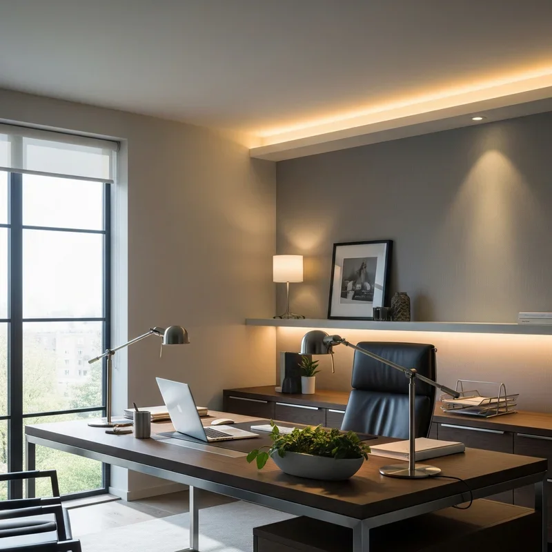 Lighting sets the mood for every interaction, from intense strategy sessions to casual check-ins with your team. Layer different light sources to create depth and flexibility throughout your day's varying needs. Task lighting at your desk prevents eye strain during detailed document review, while ambient lighting creates a welcoming atmosphere for visitors. Install dimmers on all fixtures to adjust brightness based on time of day and activity type. Consider circadian rhythm lighting that mimics natural daylight patterns, keeping you energized and focused. Accent lighting highlights artwork or achievements, subtly reinforcing your professional accomplishments without seeming boastful. LED strips under shelving add modern flair while providing functional illumination for reference materials. The right lighting strategy transforms your office from merely functional to genuinely inspiring.