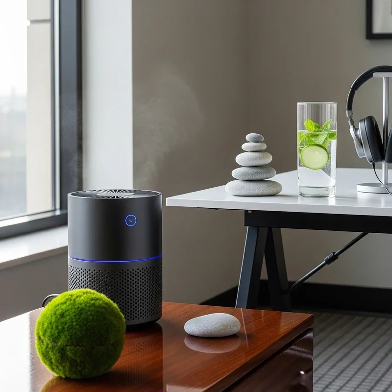 High-stress leadership roles demand offices that actively support physical and mental health throughout demanding workdays. Install an air purification system that removes allergens and toxins, keeping your mind sharp during critical decision-making moments. A small refrigerator stocked with healthy snacks and hydration options prevents energy crashes without leaving your workspace. Consider adding a yoga mat or meditation cushion in a quiet corner for quick stress-relief sessions between meetings. Adjustable standing desks promote movement and circulation, combating the health risks of prolonged sitting. Blue light filtering on screens and windows protects your eyes during long document review sessions. Essential oil diffusers provide aromatherapy benefits that boost mood and focus naturally without synthetic air fresheners. These wellness investments pay dividends in sustained energy, clearer thinking, and better long-term health outcomes.