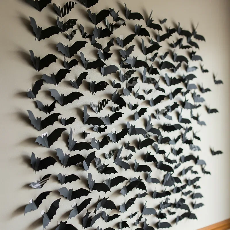 Create an impressive and budget-friendly display by crafting a colony of paper bats that can swarm across walls, ceilings, and windows. Use black construction paper or cardstock to cut out various sizes of bat silhouettes, from tiny ones that cluster together to larger statement pieces that anchor your design. Arrange them in dynamic flying formations that guide eyes through your office space, perhaps leading from the entrance to important areas like the break room or main workspace. This project works wonderfully as a team activity where everyone contributes bats during a crafting lunch hour, building community while decorating simultaneously. The three-dimensional effect achieved by slightly folding the wings adds depth and movement to your display without requiring complex construction techniques. These versatile decorations can be easily repositioned throughout October to keep the display fresh and engaging.