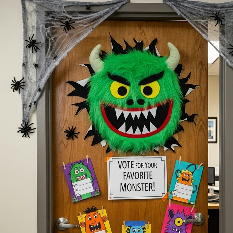 Encourage friendly competition and team bonding by organizing a monster door decorating contest where each department transforms their entrance into a unique creature. Provide basic supplies like construction paper, googly eyes, and tape, then watch as creativity flourishes with doors becoming vampires, mummies, Frankenstein's monster, or original creations. Set clear guidelines about not blocking emergency exits or fire extinguishers while giving teams freedom to express their Halloween spirit through their designs. Award prizes for categories like "Most Creative," "Scariest," and "Funniest" to ensure everyone feels included regardless of artistic ability. This activity not only decorates your office but also builds camaraderie as teams collaborate on their masterpieces. The decorated doors create perfect Instagram moments and conversation starters that keep the Halloween excitement alive throughout October.