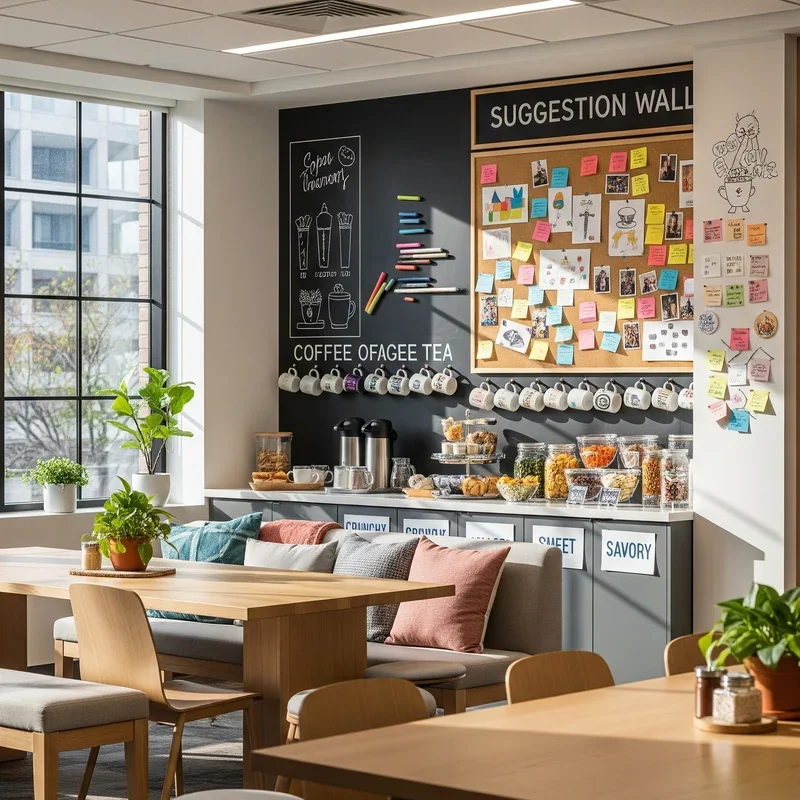 Transform your office break room into a relaxing retreat with these 15 creative ideas that boost employee morale and productivity.
