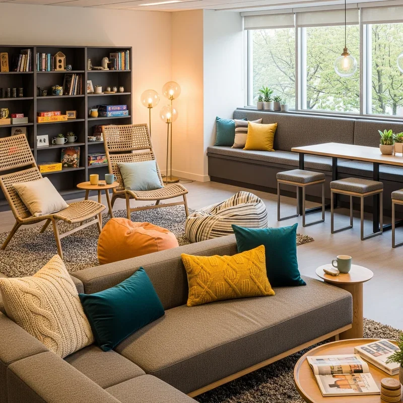 A: Comfortable seating arrangements that accommodate various relaxation styles and social preferences.