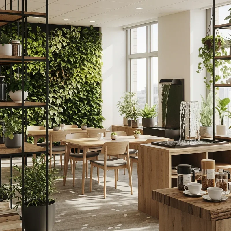 Bringing nature indoors through strategic design choices creates a calming atmosphere that reduces stress and boosts mental clarity during breaks. Maximize natural light by removing heavy curtains and arranging seating near windows where employees can enjoy outdoor views. If natural light is limited, invest in full-spectrum LED bulbs that mimic daylight and combat the dreariness of fluorescent lighting. Incorporate living plants throughout the space, from low-maintenance succulents on tables to dramatic floor plants in corners. Consider installing a living wall or vertical garden as a stunning focal point that purifies air while providing visual relief from screens. Add natural materials like wood, stone, and bamboo in furniture and décor choices. These biophilic elements tap into our innate connection with nature, creating a refreshing environment.