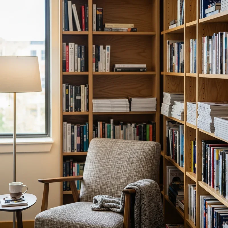 Building a diverse reading collection creates intellectual escape routes that transport employees beyond office walls through stories, knowledge, and inspiration. Stock shelves with various genres including fiction, professional development books, magazines, and graphic novels that cater to different reading preferences and attention spans. Create a book exchange program where employees can donate and borrow titles, keeping the collection fresh and personally relevant. Add comfortable reading chairs with good lighting positioned away from high-traffic areas to encourage immersive reading sessions. Include audiobook stations with headphones for those who prefer listening while relaxing. The presence of books signals that learning and personal growth are valued parts of company culture. This literary haven becomes a testament to intellectual curiosity and continuous learning within your organization.
