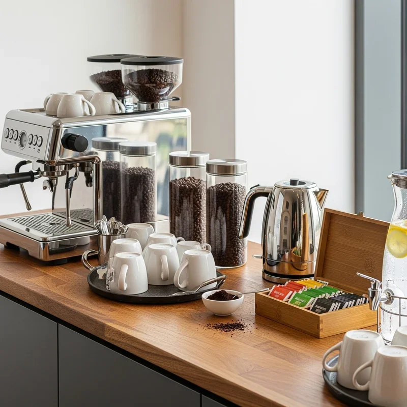 A well-equipped beverage station acts as the social hub of any break room, drawing people together over their shared love of caffeine and conversation. Upgrade from basic drip coffee to include espresso machines, tea selections, and flavored syrups that rival local coffee shops. You're essentially creating a mini café where employees can craft their perfect drink without leaving the building. Stock various milk alternatives, natural sweeteners, and seasonal flavors to cater to diverse preferences and dietary needs. Adding a water infusion station with fresh fruits and herbs encourages healthy hydration habits throughout the day. Don't forget proper storage for mugs, quality cleaning supplies, and clear labeling systems. This investment shows employees you value their daily rituals and understand that great coffee fuels great work.