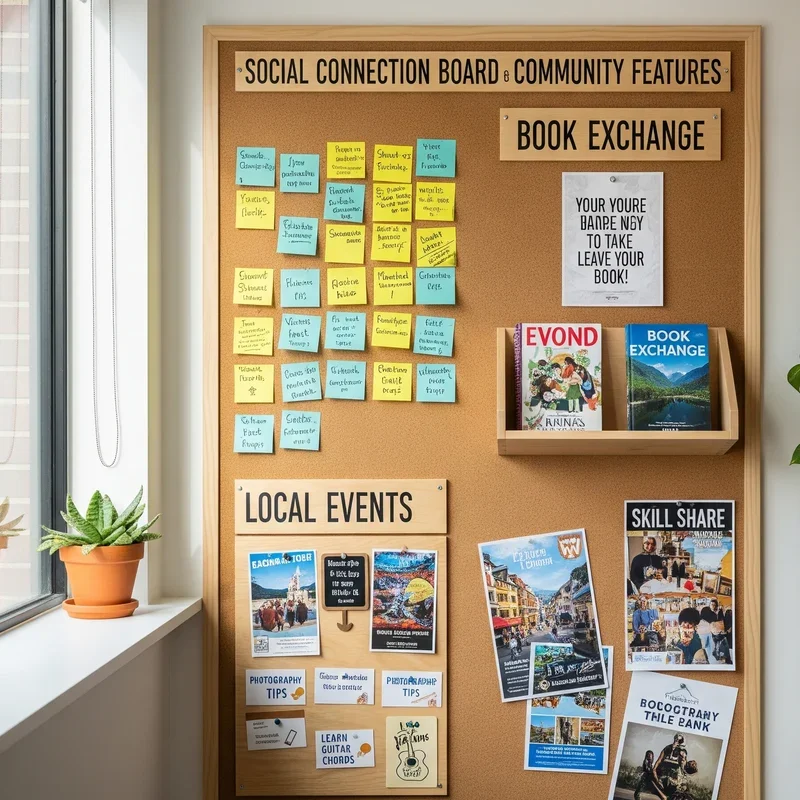 Building community connections through shared information displays creates a sense of belonging that extends beyond professional relationships into genuine workplace friendships. Install bulletin boards where employees can share personal milestones, hobby groups, volunteer opportunities, or items for sale/trade within the office community. Create a recognition wall celebrating employee achievements, birthdays, and work anniversaries that keeps everyone informed about their colleagues' important moments. Add a suggestion box or feedback board where employees can contribute break room improvement ideas, fostering ownership and engagement in the space's evolution. Consider digital displays showing team photos, company events, or rotating employee spotlights that help large organizations feel more intimate and connected. These community features transform anonymous coworkers into a supportive network that enriches the overall workplace experience.