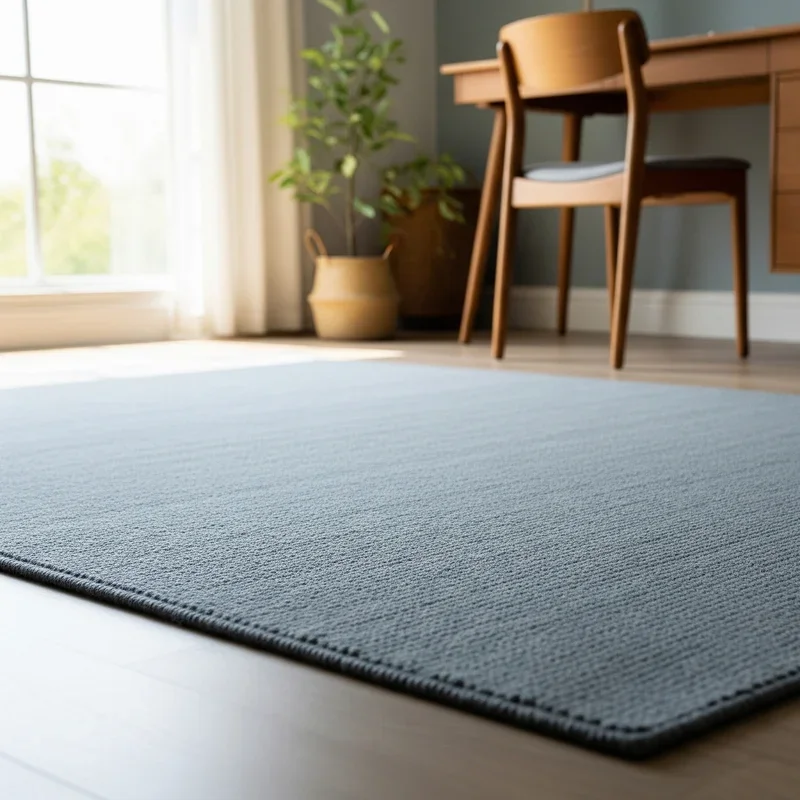 A: Select rugs extending 24-36 inches beyond your desk and chair movement range.