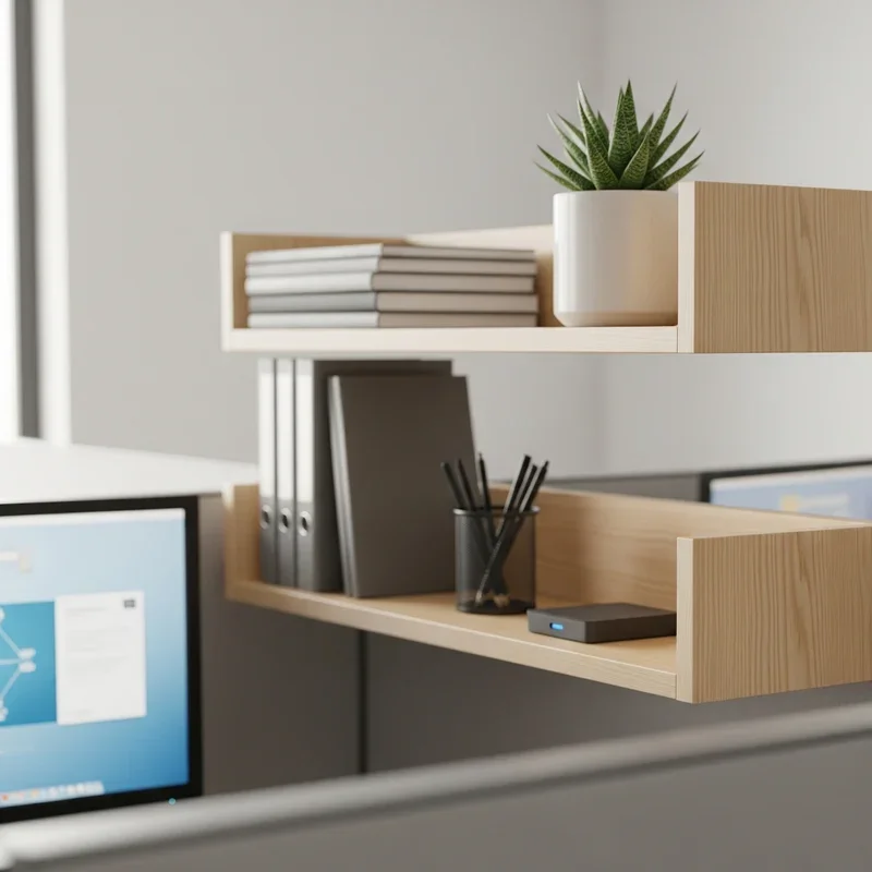 Maximize your vertical space with floating shelves that provide both storage and display opportunities. Temporary adhesive shelves or cubicle-specific hanging shelves offer solutions without permanent installation. Use them to showcase small plants, books, awards, or decorative objects that inspire you. Arrange items at varying heights to create visual interest while keeping frequently used supplies within easy reach. The additional storage helps declutter your desk surface, giving you more room to work comfortably. Choose shelf styles that complement your overall aesthetic, whether that's sleek acrylic, warm wood tones, or industrial metal. These elevated surfaces draw the eye upward, making your cubicle feel larger and more dynamic. Strategic shelf placement can also create privacy screens or define different zones within your workspace.