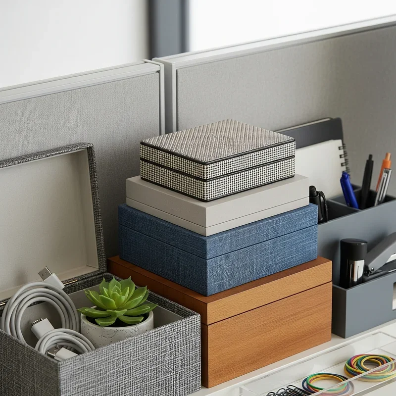 Clutter is the enemy of both productivity and style, making decorative storage solutions your secret weapon. Invest in matching storage boxes, magazine holders, and desktop organizers that complement your color scheme. These functional pieces keep supplies organized while adding visual appeal to your cubicle. Choose materials like woven baskets, metallic mesh, or colorful acrylic to match your aesthetic. Stack them vertically to maximize vertical space or arrange them symmetrically for a polished look. Label them subtly for easy access without sacrificing style. The key is selecting pieces that look intentional rather than purely utilitarian. When everything has its place, your cubicle automatically looks more sophisticated and put-together. Plus, an organized space leads to an organized mind, helping you tackle tasks more efficiently throughout your workday.