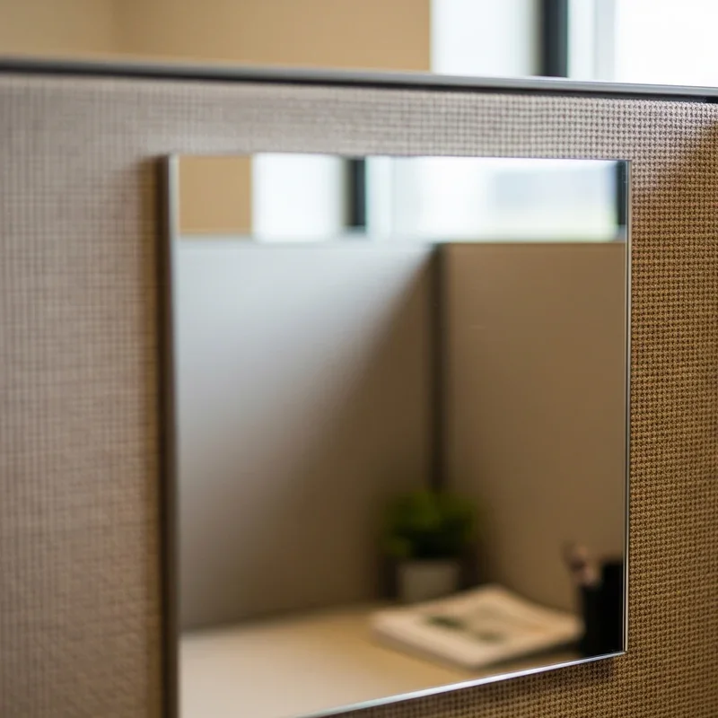 A strategically placed mirror can work magic in a cramped cubicle, creating the illusion of more space and reflecting light. Choose a decorative mirror that doubles as wall art, whether it's a sunburst design, geometric shape, or vintage-inspired piece. Position it to reflect natural light from nearby windows or to give you a view beyond your cubicle walls. Beyond the practical benefits, checking your appearance before meetings boosts confidence. Mirrors also help you maintain awareness of your surroundings without constantly turning around. Select a size that makes a statement without overwhelming your limited wall space. The reflective surface adds depth and dimension to flat cubicle walls, making the space feel less box-like. This simple addition can transform your cubicle from claustrophobic to surprisingly spacious.