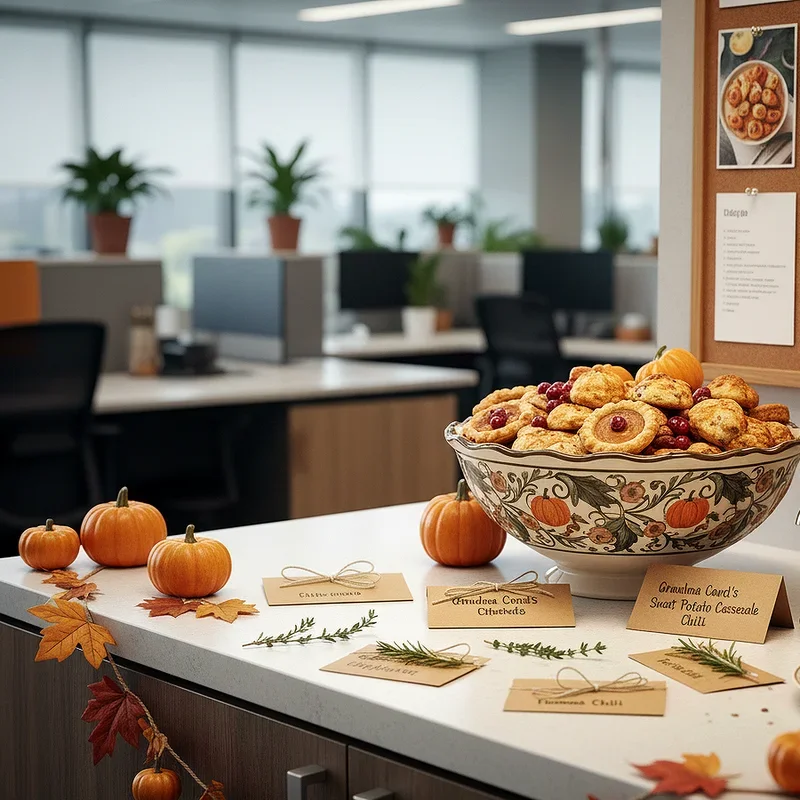 Compile a digital or physical cookbook featuring cherished Thanksgiving recipes from employees' families, creating a meaningful keepsake that celebrates the diverse culinary traditions within your workplace. Ask team members to submit their favorite holiday dishes along with personal stories or memories that make these recipes special to them. You'll uncover fascinating family histories and cultural traditions while building a resource that employees can use for years to come. Format the collection professionally, perhaps including photos of the contributors or their finished dishes, turning it into a genuine piece of office history. The process of gathering and sharing these recipes sparks conversations about heritage and tradition that deepen workplace relationships beyond surface level interactions. Distribute copies before Thanksgiving so employees can try new recipes for their own celebrations, extending your office community into their homes.